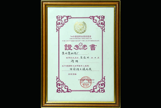 黔春酒——1988年中华人民共和国国家质量奖“优质奖”